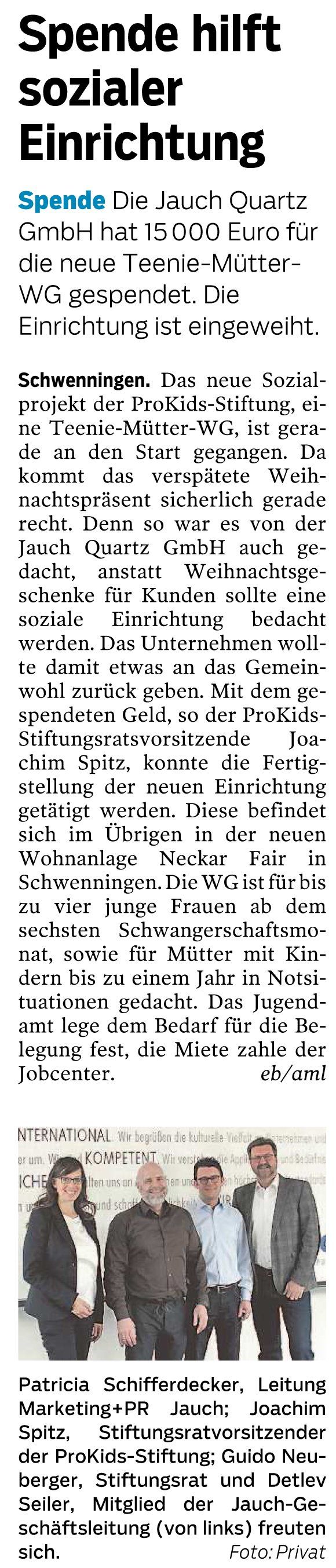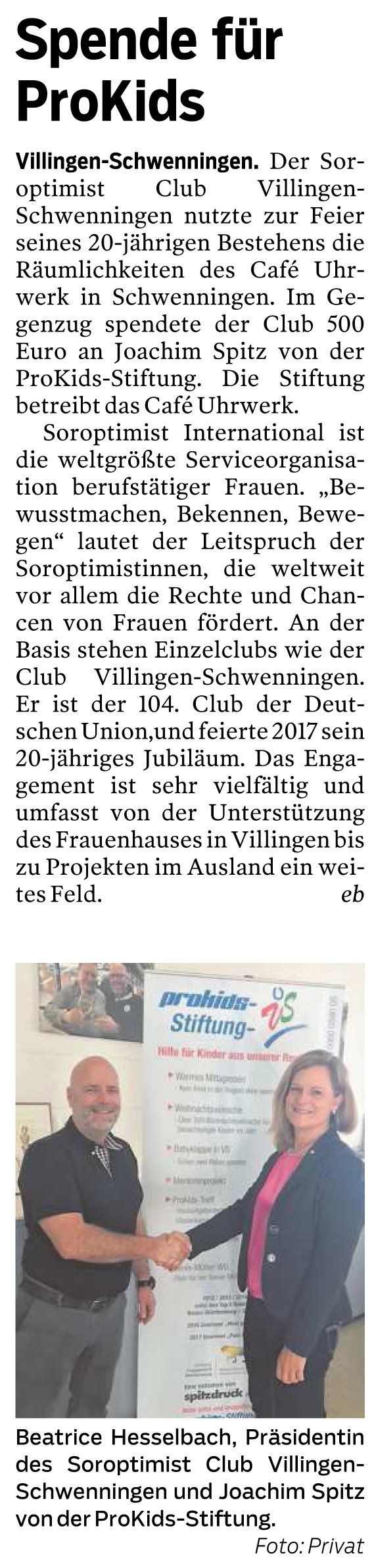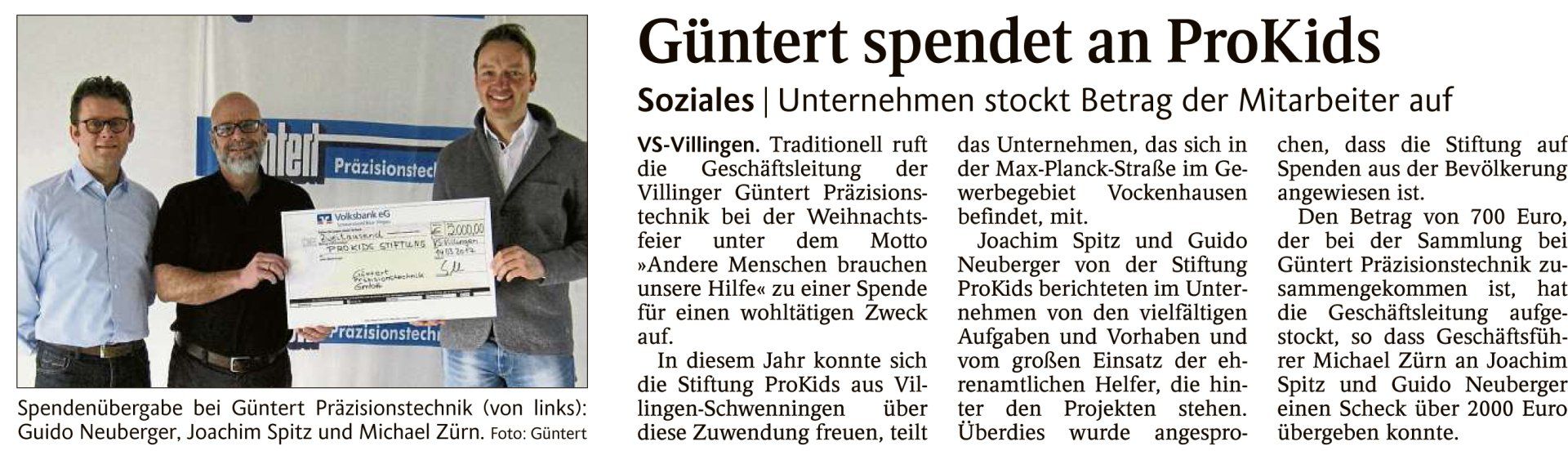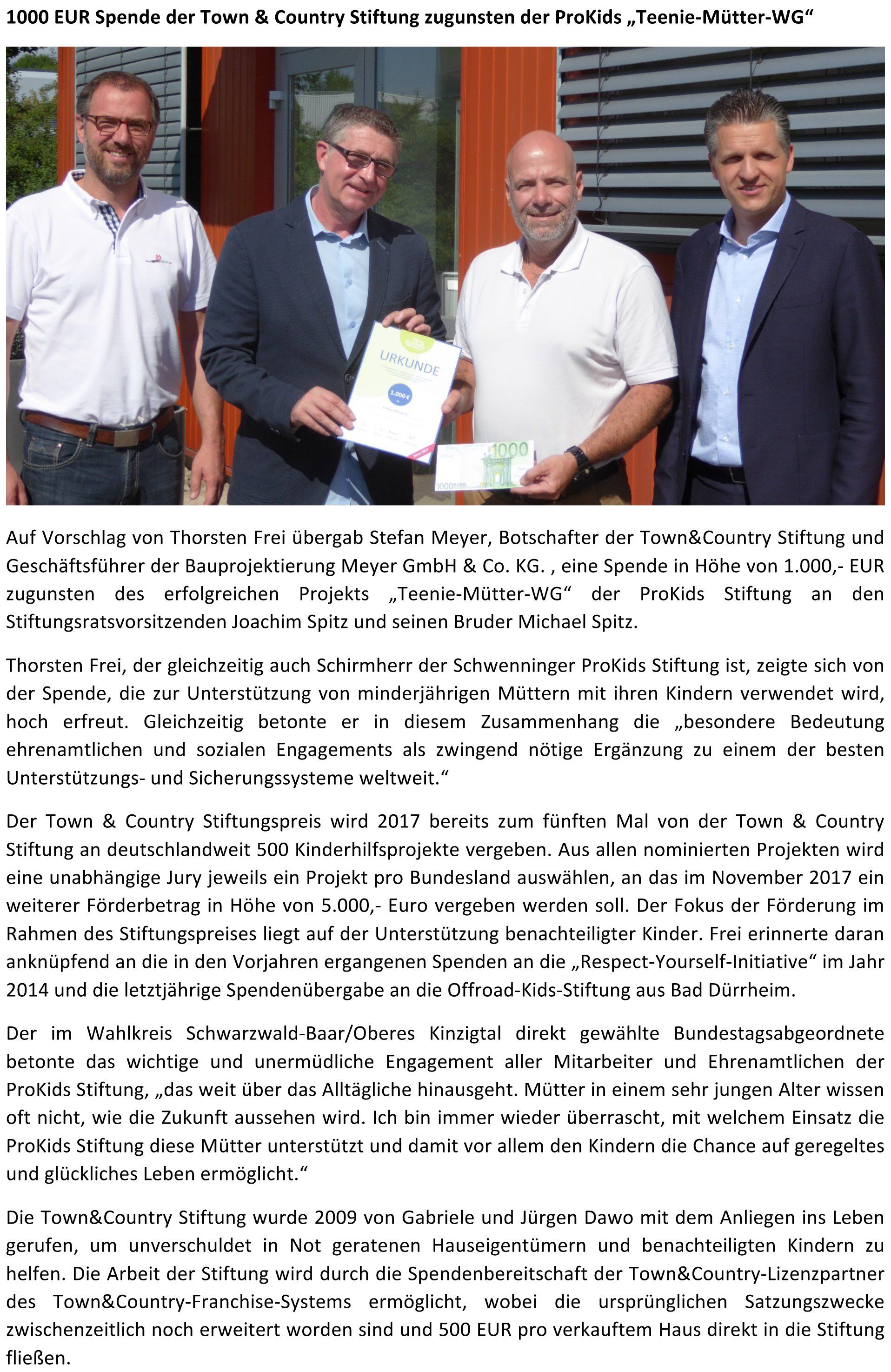 November 9, 2017 – Press release from the ProKids Foundation