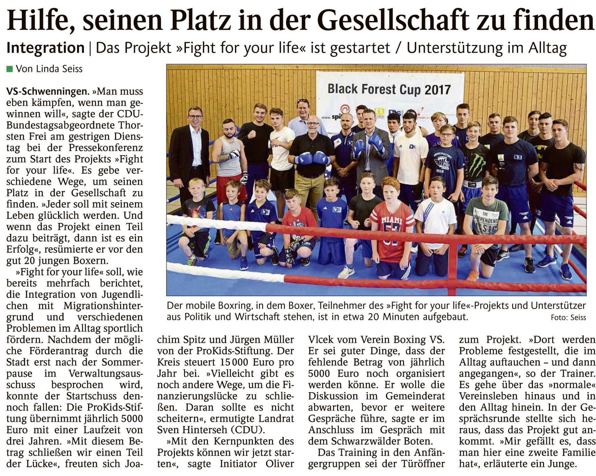 Oliver Vlcek, now sports director of the Württemberg Boxing Association, is extremely pleased about this. Together with Joachim Spitz, he wants to convey his activities to opponents of boxing and make it clear to them that this discipline can have a high socio-educational value. The Rotary Club of Villingen-Schwenningen has long recognized this and awarded the project and its founder, Oliver Vlcek, the Paul Harris Prize for social commitment – just as it did the following year to Joachim Spitz, who, with his foundation, has initiated and successfully led a wealth of social projects over the past ten years.