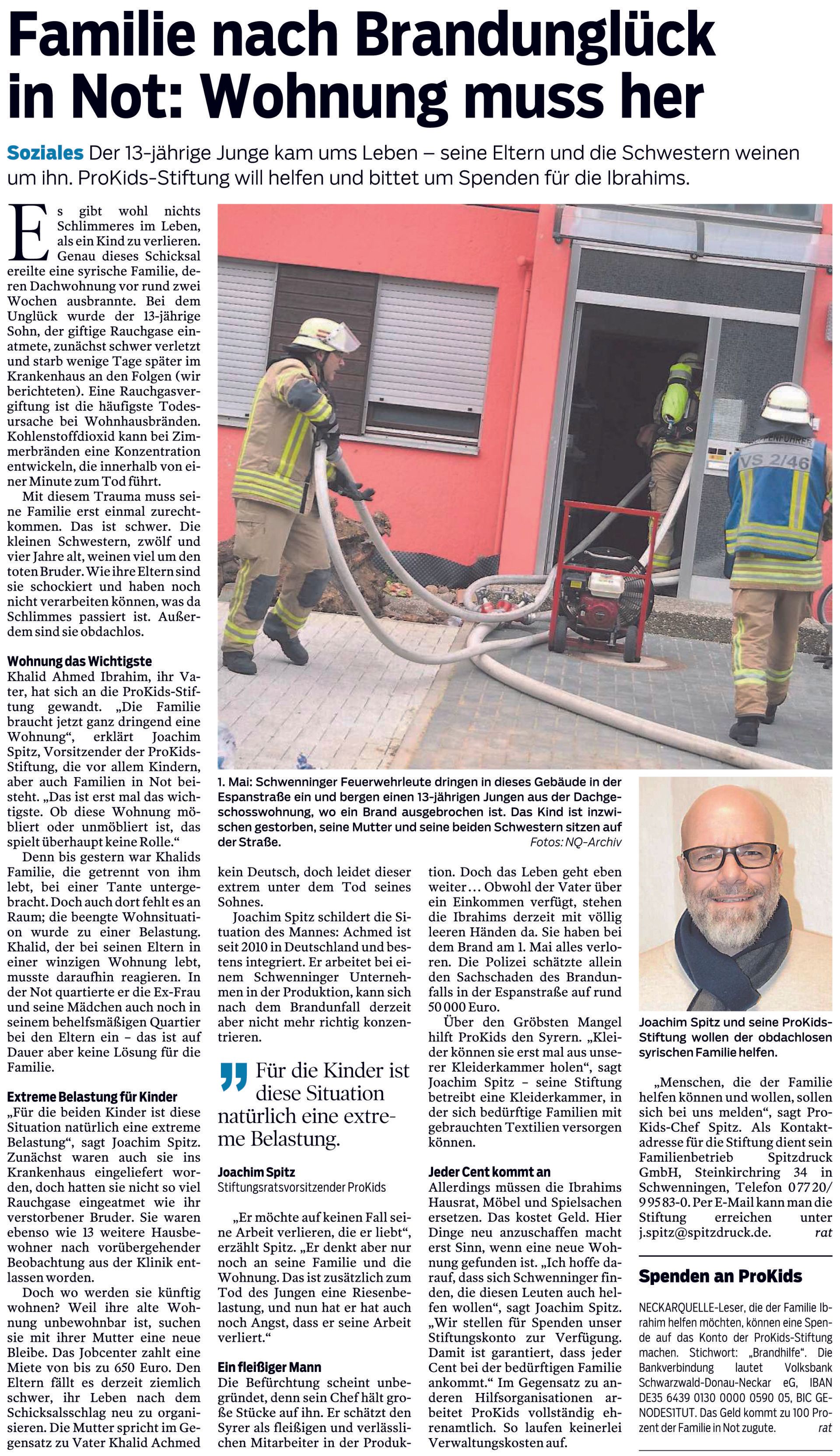 Још једном, бебино одељење Фондације ПроКидс у Швенингену спасило је млади живот: Јоаким Шпиц, председник Управног одбора Фондације ПроКидс, потврдио је новинарима да је у ноћи ... (датум) још једно новорођенче смештено у одељење у Францискусхајму на Некарштрасеу. Девојчица/дечак (пол) је пето дете које је смештено у одељење од 2010. године. Инцидент још једном показује колико је оснивање бебиног одељења у Швенингену важно за цео регион.