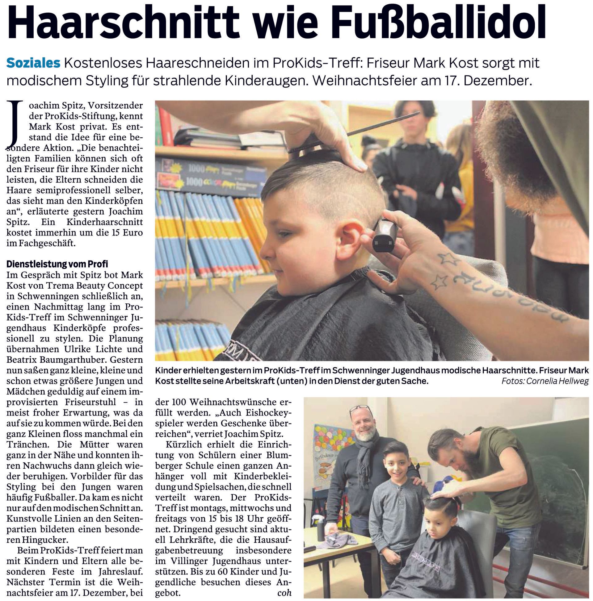 Финансирање топлих школских оброка за децу из породица са ниским приходима био је први пројекат Фондације ProKids, која на много начина подржава сиромашну децу и младе у граду и региону. Од тада је додато још много пројеката, посебно откако влада сада покрива школске оброке. Топли оброци за социјално угрожене ученике сада се првенствено финансирају кроз Пакет за образовање и учешће. Али у Швенингену, ProKids се сада враћа својим коренима. То је зато што је овде истекао Програм ЕУ за воће у школама за ученике средњих школа.