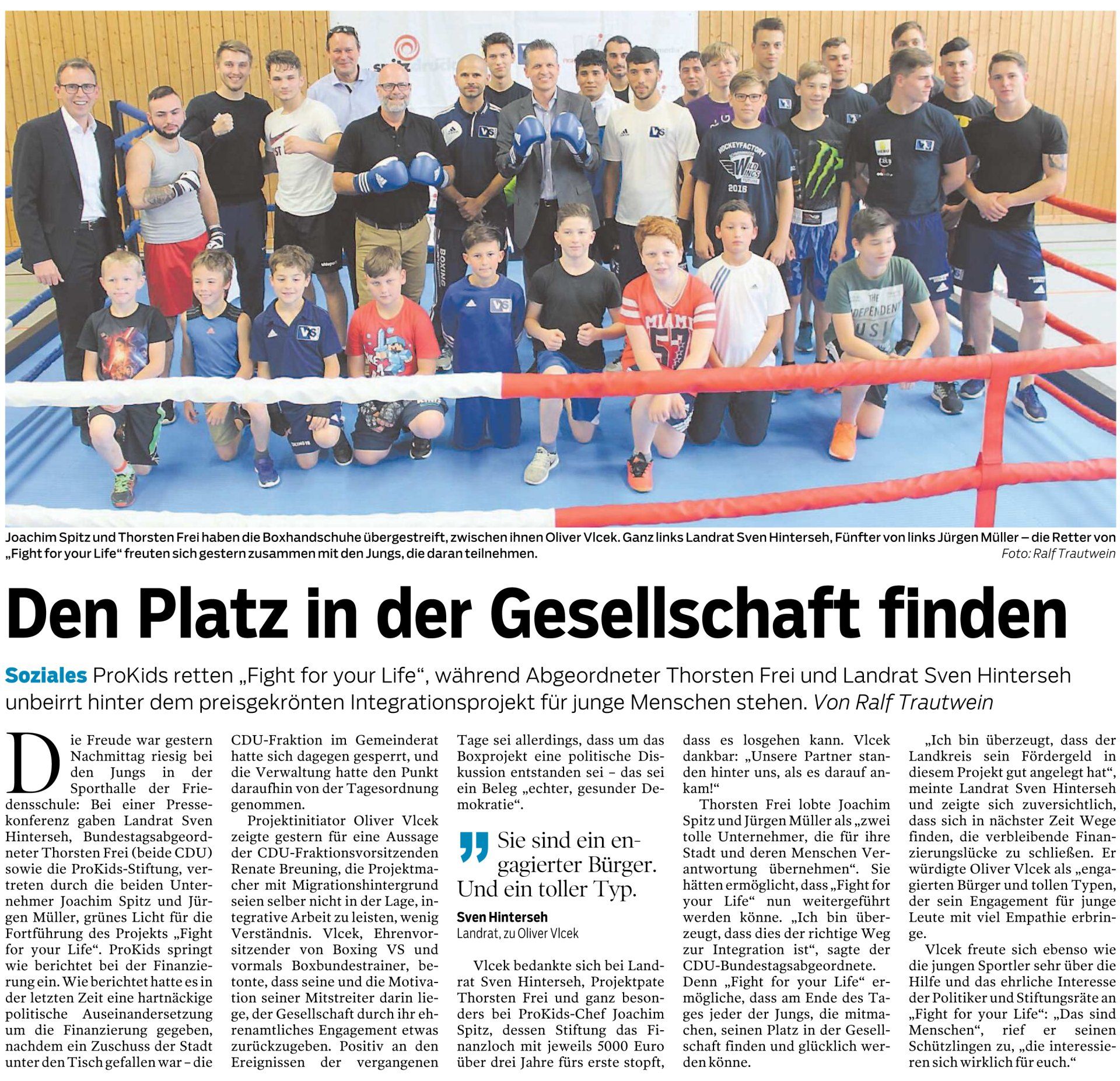 It is thanks to the foundation that "Fight for your Life" continued after the city dropped the project financially like a hot potato in the summer. After state funding expired, Vlcek needed new sponsors. However, a majority in the city council signaled that they would refuse to provide funding. Mayor Dr. Kubon then removed the item from the agenda. "Fight for your Life" faced an existential funding gap and was on the verge of collapse, even though the district firmly supported the concept and project sponsor Thorsten Frei advocated for a rethink. But even the influential member of the Bundestag, who is also the patron of the ProKids Foundation, was unable to achieve success on the political level.