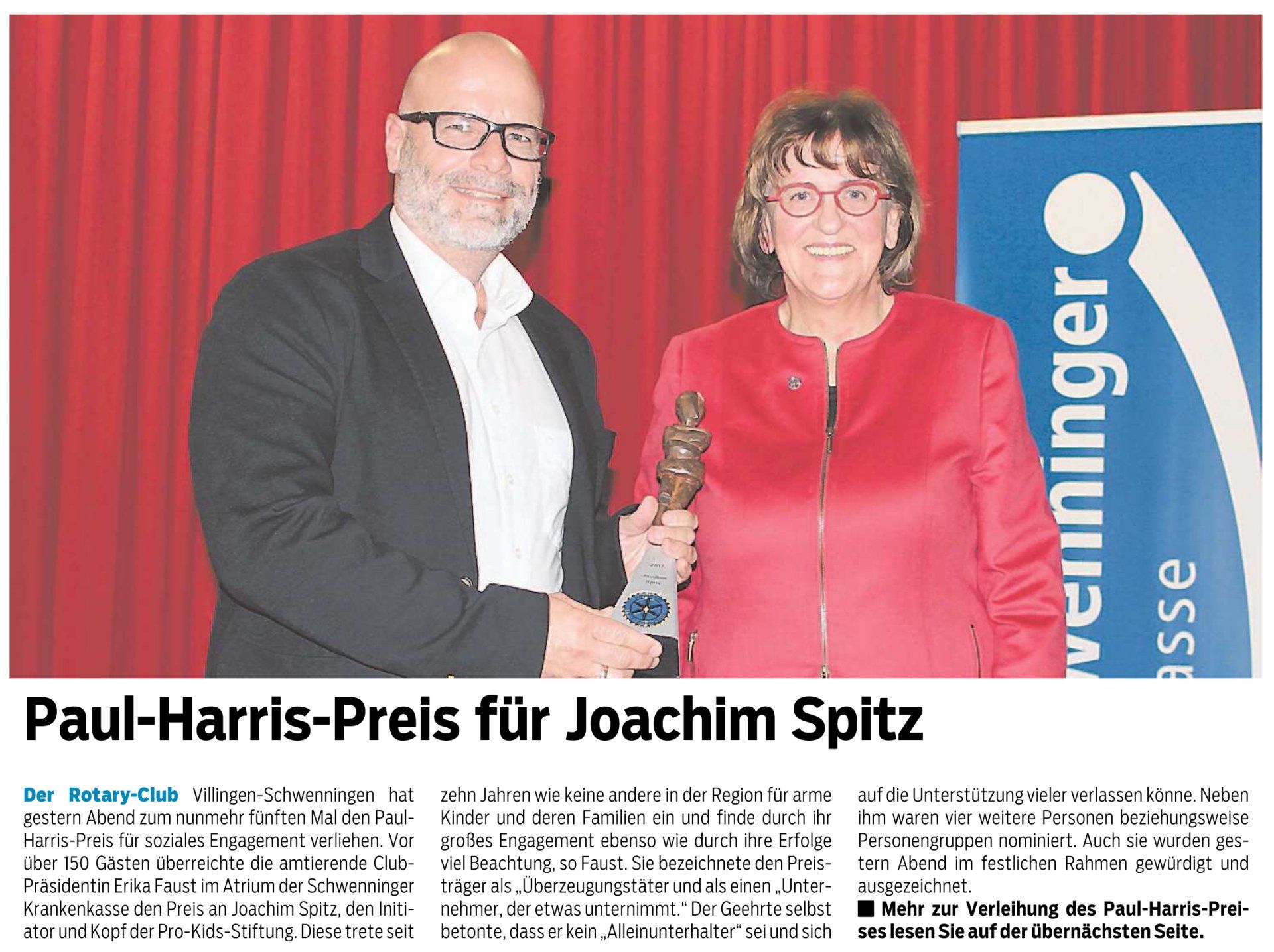 Oliver Vlcek, now sports director of the Württemberg Boxing Association, is extremely pleased about this. Together with Joachim Spitz, he wants to convey his activities to opponents of boxing and make it clear to them that this discipline can have a high socio-educational value. The Rotary Club of Villingen-Schwenningen has long recognized this and awarded the project and its founder, Oliver Vlcek, the Paul Harris Prize for social commitment – just as it did the following year to Joachim Spitz, who, with his foundation, has initiated and successfully led a wealth of social projects over the past ten years.