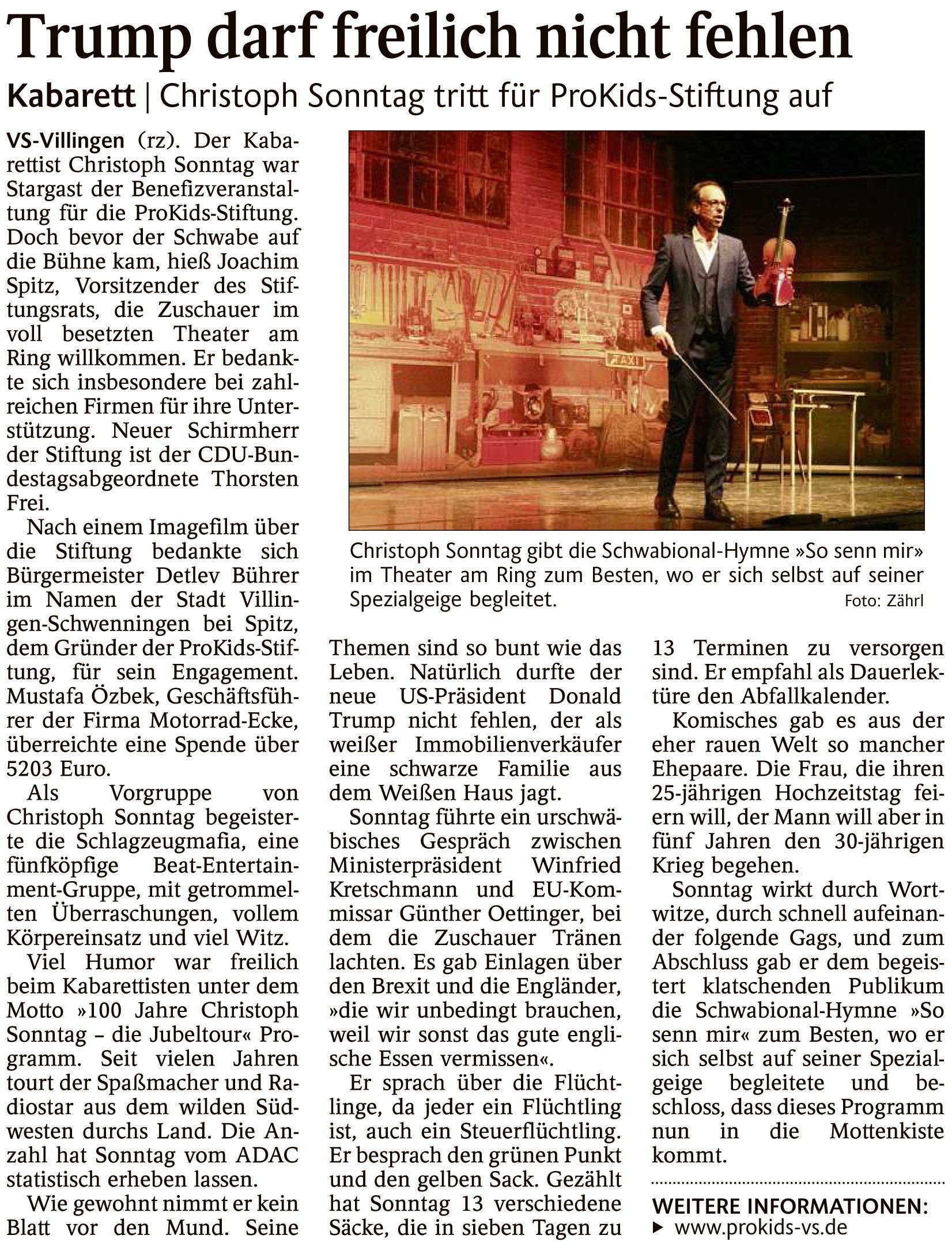 November 9, 2017 – Press release from the ProKids Foundation